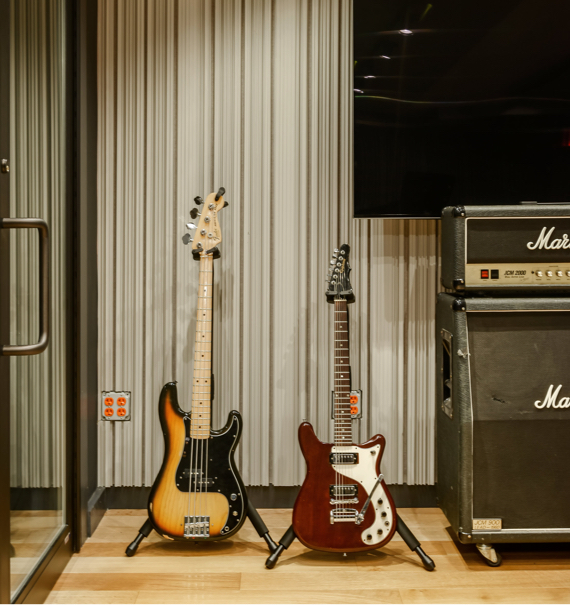 In transitioning this pre-war loft to a state-of-the-art audio recording studio, we committed to prioritizing its purpose as a musician’s workspace without ever compromising on design. Every detail of the 2,000-square-foot gut-renovation was chosen with this harmony of aesthetics and function in mind, from the vintage white oak floor and Venetian plastered walls to the tailored acoustical doors and flexible, soundproof studio spaces.